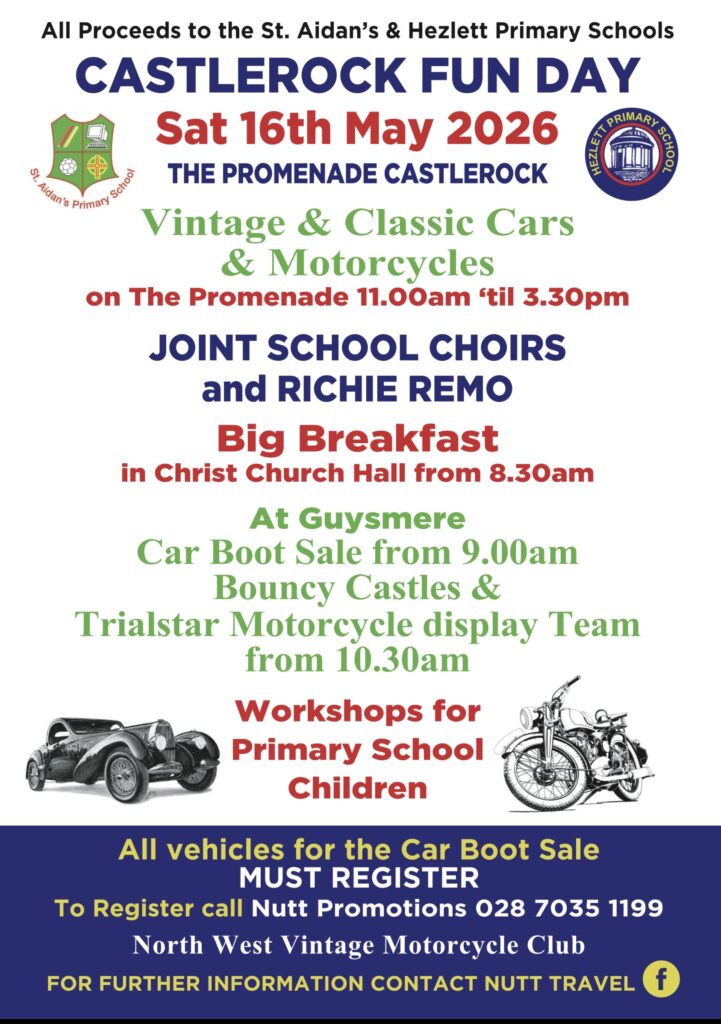 Castlerock Fun Day is back on Saturday 16th May 2026, taking over the promenade for a full day of family-friendly stuff, good food, and a bit of everything in between. It’s all in support of St. Aidan’s and Hezlett Primary Schools too, so you’re doing a good turn just by showing up.